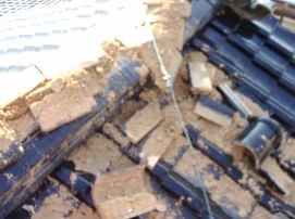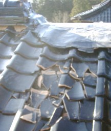 屋根から雪が落ちたのはいいが、その下から破損した瓦が所々・・・